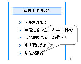 2) 進(jìn)入"個人管理中心",位于左側(cè)子欄目的"我的工作機會",點擊"職位搜索器"如下圖所示: